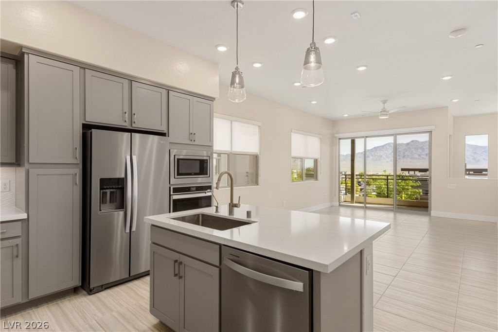 Welcome to this new, beautifully upgraded home in the 55+ guard-gated community of Trilogy Sunstone. Located steps from the clubhouse and on-site restaurant, this 2-bedroom, 2.5-bath residence offers both convenience and modern luxury. The stylish kitchen features grey cabinetry, quartz countertops, stainless steel appliances and an island. Ceramic flooring adds a clean, contemporary touch throughout the main living areas. Both bedrooms are generously sized, offering comfort and privacy, while the additional half bath is perfect for guests. Enjoy a private balcony with mountain views?ideal for relaxing mornings or quiet evenings. A tandem two-car garage and plenty of storage make this a practical choice for low-maintenance living. You'll enjoy full membership to the Cabochon Club that includes a restaurant, fitness center, resort-style pool, coffeehouse, parks, pickleball, and lighted walking trails. This premier resort-style living in a prime location is available immediately.