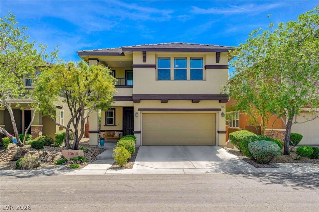 Beautifully updated 2,245 SF home in Summerlin South, ideally located between Mesa Park and Amado Neighborhood Park, with access to the neighborhood pool and kids splash pool. This 3 bedroom, 2.5 bath home with a downstairs den and loft offers flexible living space suited for today's lifestyle. The open-concept main level features a fully equipped kitchen with stainless steel appliances, seamlessly connecting to the dining and primary living areas. Fresh interior paint and new carpet upstairs create a crisp, move-in-ready feel. The primary suite offers a private balcony and a well-appointed bath with dual sinks, a separate tub and shower, and a custom walk-in closet. Enjoy a covered patio and fully finished backyard?perfect for outdoor living and entertaining with mountain views. Prime location with close proximity to Bishop Gorman, Downtown Summerlin, Durango Station, and UnCommons. A compelling opportunity combining location, layout, and lifestyle.