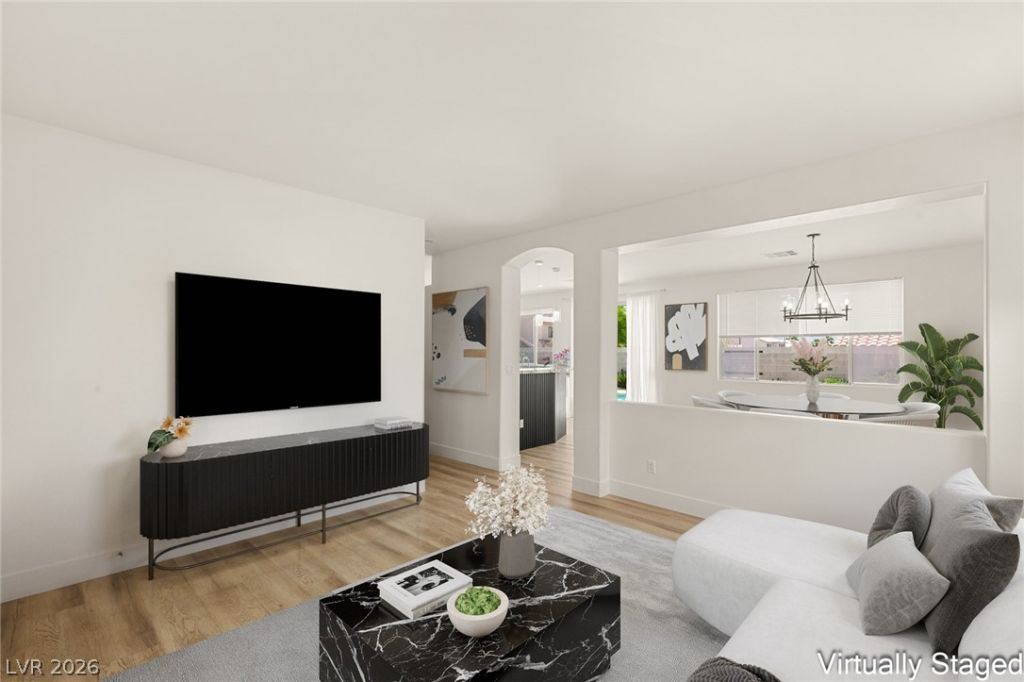 Beautifully maintained home tucked within a quiet cul-de-sac. Recently remodeled, it features a new kitchen, updated bathrooms, luxury vinyl flooring with 5-inch baseboards, fresh paint, and modern light fixtures. The bright, open-concept layout is filled with natural light, while the kitchen offers ample cabinetry, stainless steel appliances, generous counter space, and a casual dining area. A separate dining room is perfect for entertaining. This home includes 3 bedrooms, 2 baths, and a 2-car garage. The primary suite features an en-suite bath, while secondary bedrooms are spacious and well-positioned. The backyard boasts a sparkling pool, expansive outdoor space, and mature landscaping. No HOA and a large side yard provide room for RV or boat parking. Enjoy serene mountain views?move-in ready!