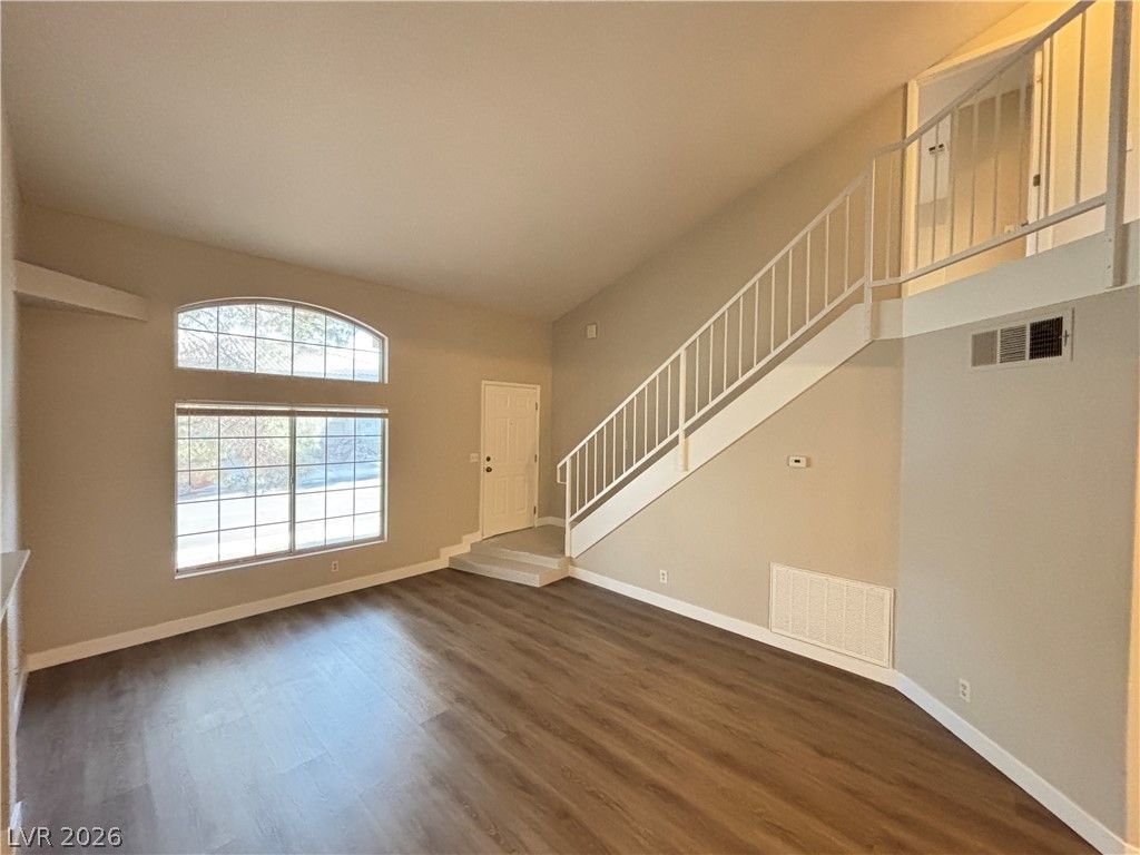 Spacious home featuring an open floor plan and comfortable upgrades throughout. Enjoy soaring ceilings, luxury vinyl plank flooring, updated lighting on the first floor, and soft carpeting upstairs. The inviting living room is centered around a beautiful fireplace and large picture window that fills the space with natural light. The kitchen offers a breakfast bar, quartz countertops, stainless steel appliances, a stylish backsplash, and ample cabinet space. The first primary bedroom includes a walk-in closet, ceiling fan with light, and a full bathroom. The second primary bedroom features a ceiling fan with light, generous closet space, and a convenient 3/4 bath with tub & shower combo. Additional highlights include a one-car garage and access to community amenities such as a pool, spa, fitness center, and clubhouse. This cozy home provides a peaceful retreat while being conveniently located near freeway access and shopping.