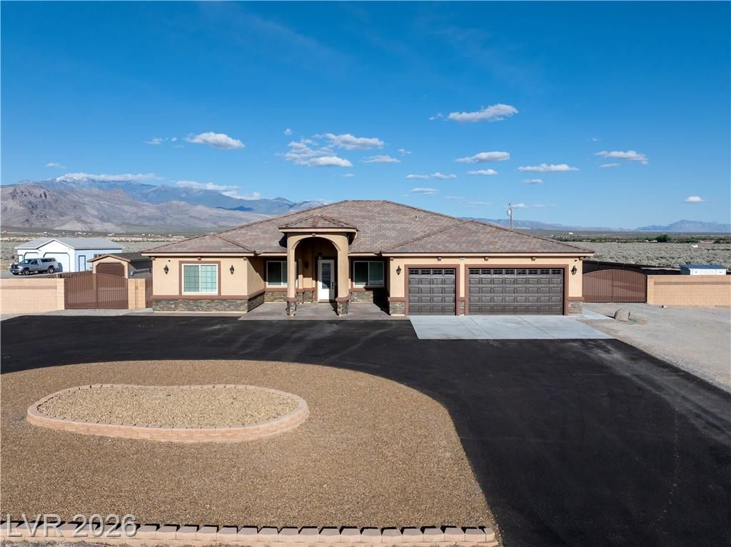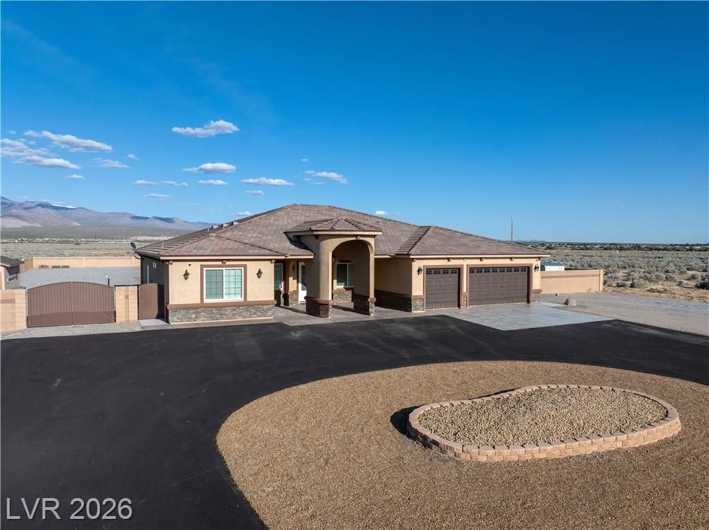 CUSTOM HOME - 3 Bedrooms, Each bedroom having it own en suite, 4 bathroom Approx. 2880 sqft. on 1.10 acres, Home Features , Office / Den, Stone veneer exterior, Stamped concrete, Desert landscaping, Open floor plan, Two tone paint, Quartz counters, Slow close cabinets and drawers, Large primary bedroom and bathroom with dual head custom tile shower, Spacious walk-in closet, 3 car garage with utility sink, And Asphalt circular driveway spectacular pool , full block wall around back yard, spectacular view of the surrounding mountains.