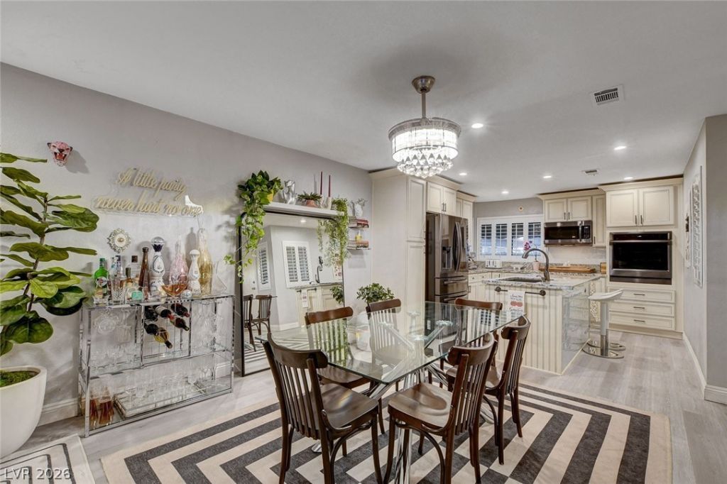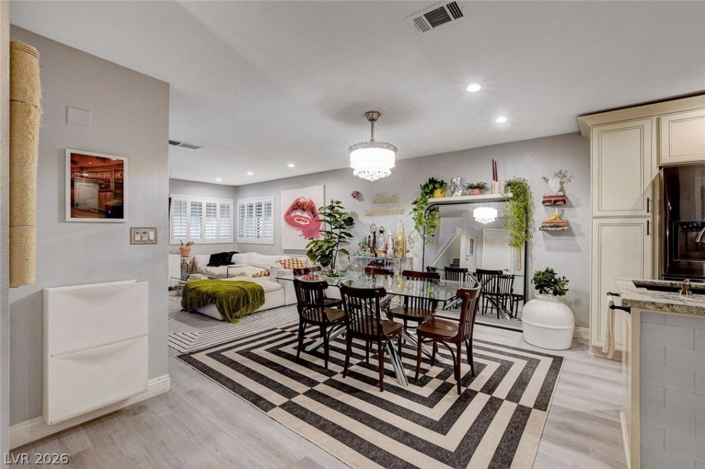 Prepare to be absolutely captivated by this breathtaking, fully reimagined condo where luxury, style, and sophistication shine in every detail! From the moment you step through the secured front patio, you're welcomed into a stunning, designer-inspired space that feels elegant and inviting. At the heart of the home, the kitchen has been completely transformed, featuring a grand island, rich granite countertops, sleek black SS appliances, and a striking designer backsplash! The dramatic great room impresses with soaring 18-ft vaulted ceilings and a beautifully updated fireplace, creating a warm yet refined focal point. Elegant chandeliers, upgraded lighting, and gorgeous new luxury hardwood flooring elevate the entire space. Retreat to spa-inspired bathrooms with LED exhaust fans and Bluetooth speaker capability, while the primary suite offers a spacious walk-in closet. With custom window shutters throughout and a brand-new HVAC system, every inch exudes upscale, turnkey perfection!!!