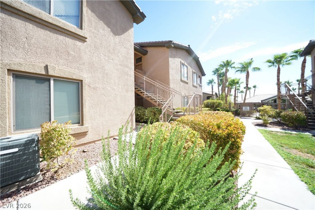 This 2 bed 2 bath ground floor condo unit is located in gated community in the highly desired southwest area right outside of Mountains Edge. This home has a electric fireplace in the living room, granite counters and beautiful wood cabinets with pulls in the kitchen, tile in wet areas and plush carpet throughout This unit is in excellent condition. Primary bedroom is separate from the 2nd bedrooom for privacy and has ceiling fan/light and large mirrored wardrobe closets. The 2nd bedroom also has ceiling fan/light and walk in closet. This unit is located right next to the pool.